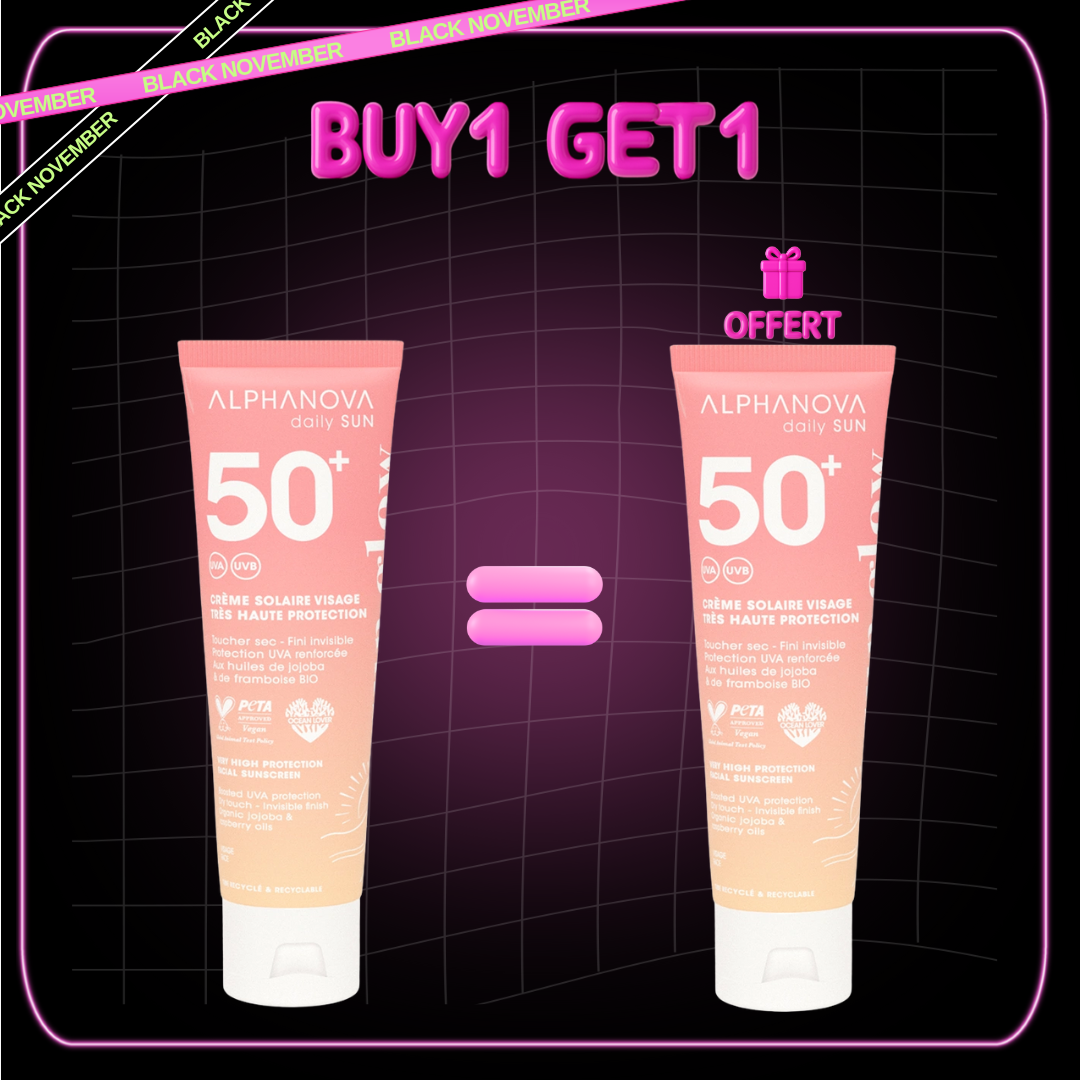 La crème solaire visage SPF50+ Daily Sun est une protection solaire ultra-performante de dernière génération. Cet indice élevé assure une très haute protection contre les UVA et les UVB.