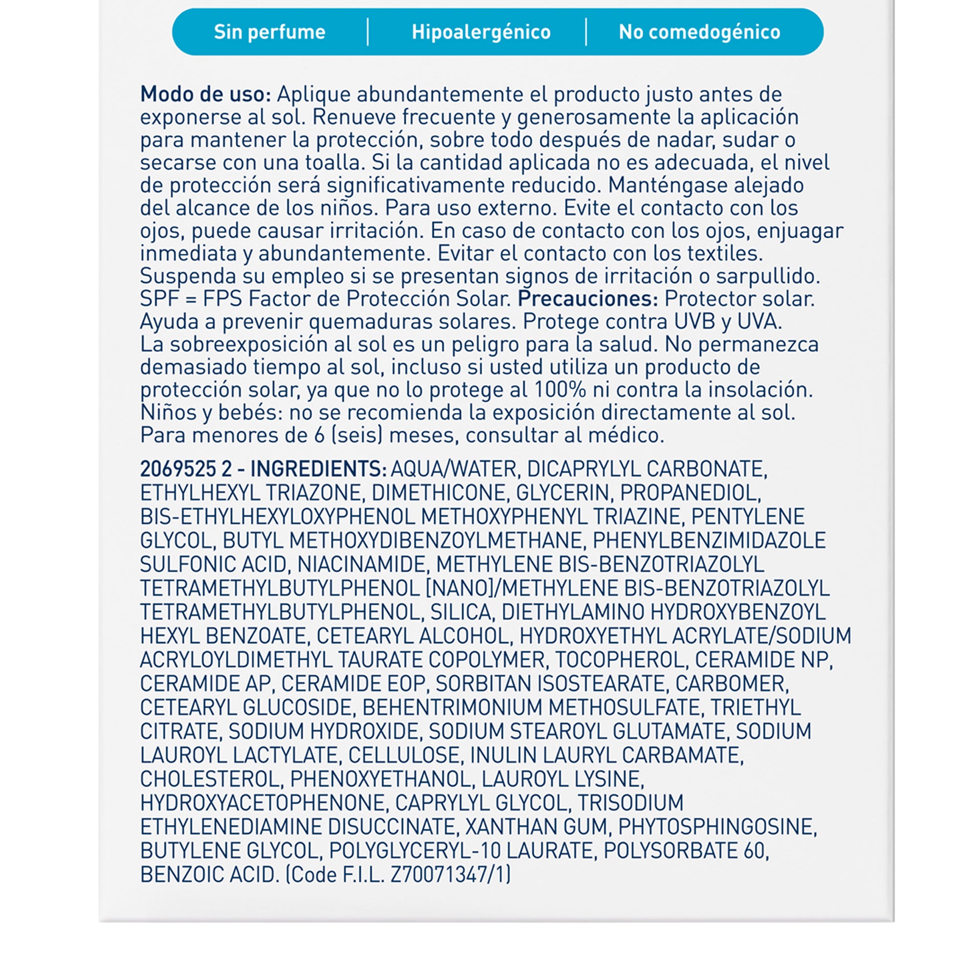 Composition : AQUA / WATER • DICAPRYLYL CARBONATE • ETHYLHEXYL TRIAZONE • DIMETHICONE • GLYCERIN • PROPANEDIOL • BIS-ETHYLHEXYLOXYPHENOL METHOXYPHENYL TRIAZINE • PENTYLENE GLYCOL • BUTYL METHOXYDIBENZOYLMETHANE • PHENYLBENZIMIDAZOLE SULFONIC ACID • NIACINAMIDE • METHYLENE BIS-BENZOTRIAZOLYL TETRAMETHYLBUTYLPHENOL [NANO] / METHYLENE BIS-BENZOTRIAZOLYL TETRAMETHYLBUTYLPHENOL • SILICA • DIETHYLAMINO HYDROXYBENZOYL HEXYL BENZOATE • CETEARYL ALCOHOL • HYDROXYETHYL ACRYLATE/SODIUM ACRYLOYLDIMETHYL TAURATE COPOLYMER • TOCOPHEROL • CERAMIDE NP • CERAMIDE AP • CERAMIDE EOP • SORBITAN ISOSTEARATE • CARBOMER • CETEARYL GLUCOSIDE • BEHENTRIMONIUM METHOSULFATE • TRIETHYL CITRATE • SODIUM HYDROXIDE • SODIUM STEAROYL GLUTAMATE • SODIUM LAUROYL LACTYLATE • CELLULOSE • INULIN LAURYL CARBAMATE • CHOLESTEROL • PHENOXYETHANOL • LAUROYL LYSINE • HYDROXYACETOPHENONE • CAPRYLYL GLYCOL • TRISODIUM ETHYLENEDIAMINE DISUCCINATE • XANTHAN GUM • PHYTOSPHINGOSINE • BUTYLENE GLYCOL • POLYGLYCERYL-10 LAURATE • POLYSORBATE 60 • BENZOIC ACID (F.I.L. Z70071347/1).
