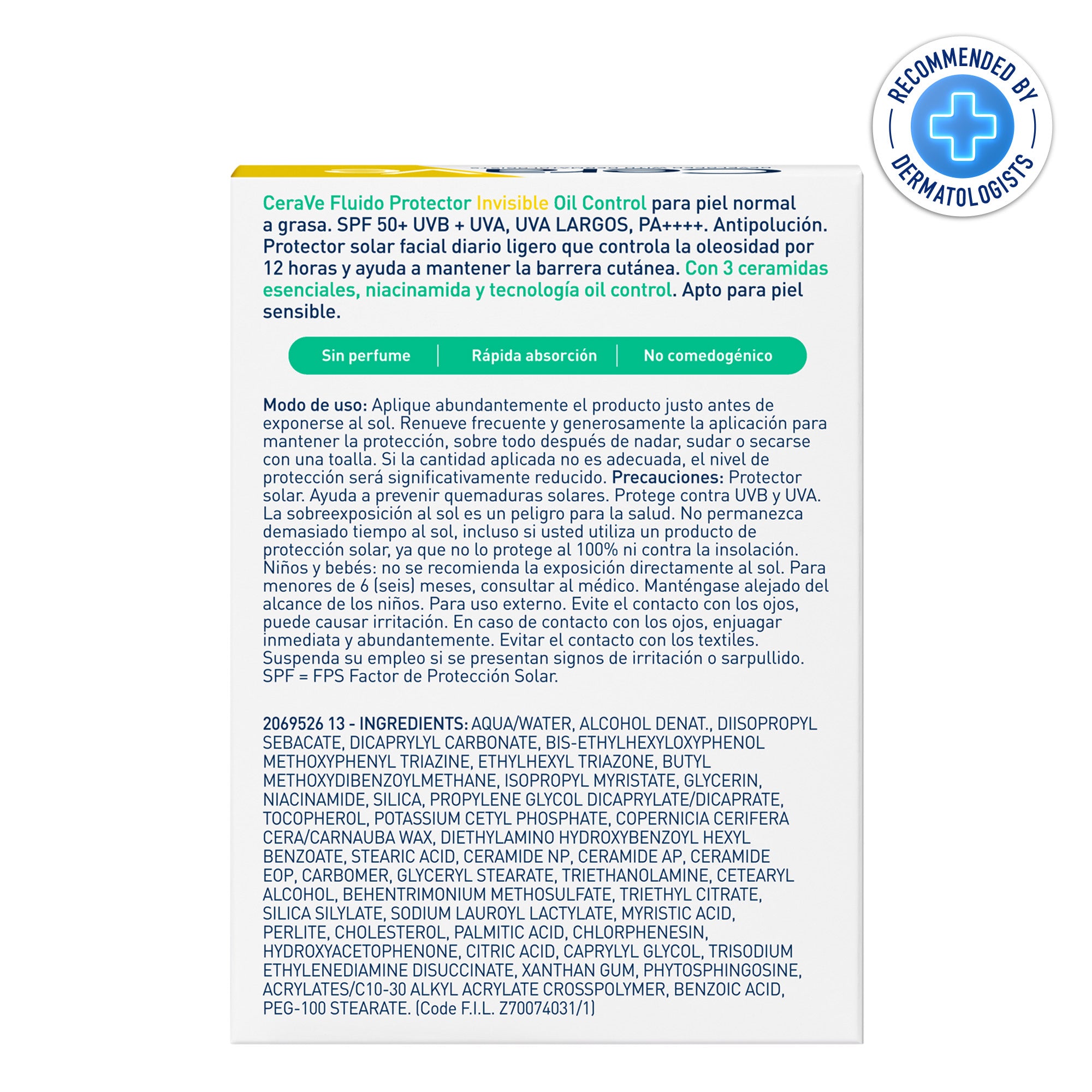 Cerave Fluide Invisible Toucher Sec SPF50+ | Peau Normale à grasses | Tendance acnéique | 50ml