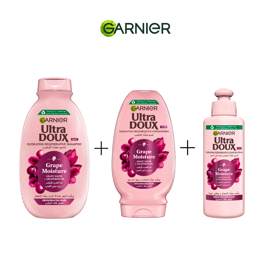 Offrez à vos cheveux une hydratation intense avec le coffret Garnier Ultra Doux Grape Moisture, spécialement conçu pour les cheveux déshydratés.
