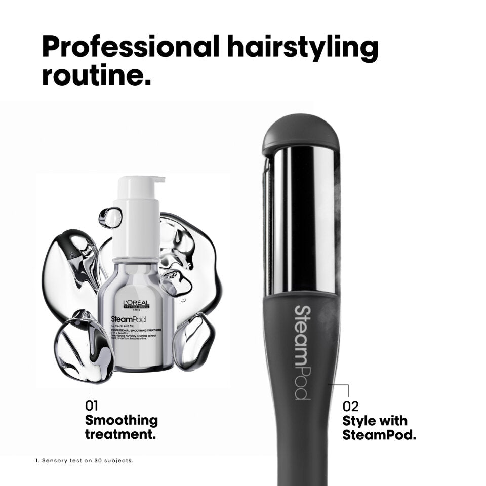 [TECHNOLOGIE VAPEUR BREVETÉE] Sa technologie vapeur brevetée offre un respect optimal de la fibre tout en réduisant la durée de coiffage et améliorant l’expérience de lissage, pour des cheveux visiblement plus lisses¹ : - Coiffage 3x plus rapide² - Cheveux 2x plus lisses², 30% plus près de la racine en comparaison avec le Steampod 3 - 95% de dommages en moins³.