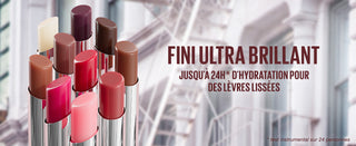 Résultat : Des lèvres instantanément lissées et au brillant intense, pour un effet laqué comme un vernis, 24H* d'hydratation, *test instrumental sur 24 personnes