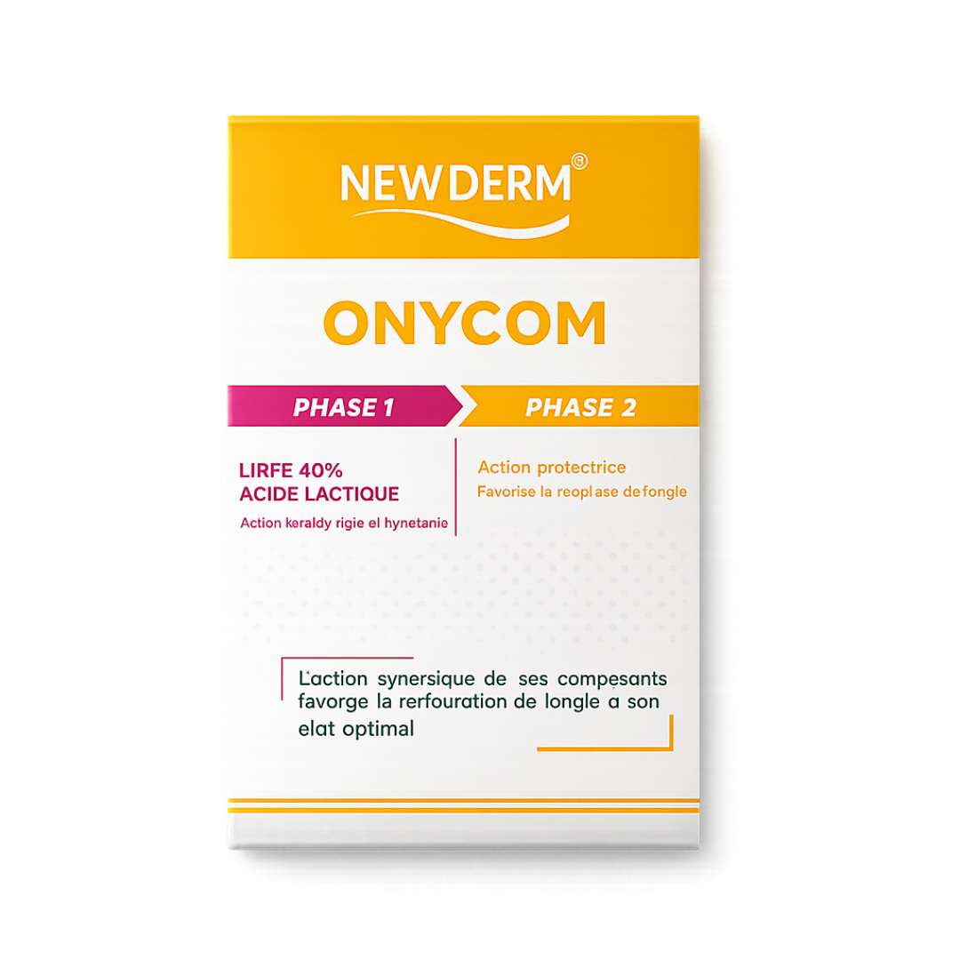 Le NEW DERM Onycom Phase 1 + Phase 2 est un traitement complet en deux étapes spécialement conçu pour assainir, traiter et restaurer les ongles fragilisés. Cette solution progressive agit efficacement sur les ongles altérés, épaissis ou décolorés, tout en favorisant une repousse saine et résistante. Un traitement ciblé très recherché en parapharmacie maroc, disponible sur BeautyMarket.ma.