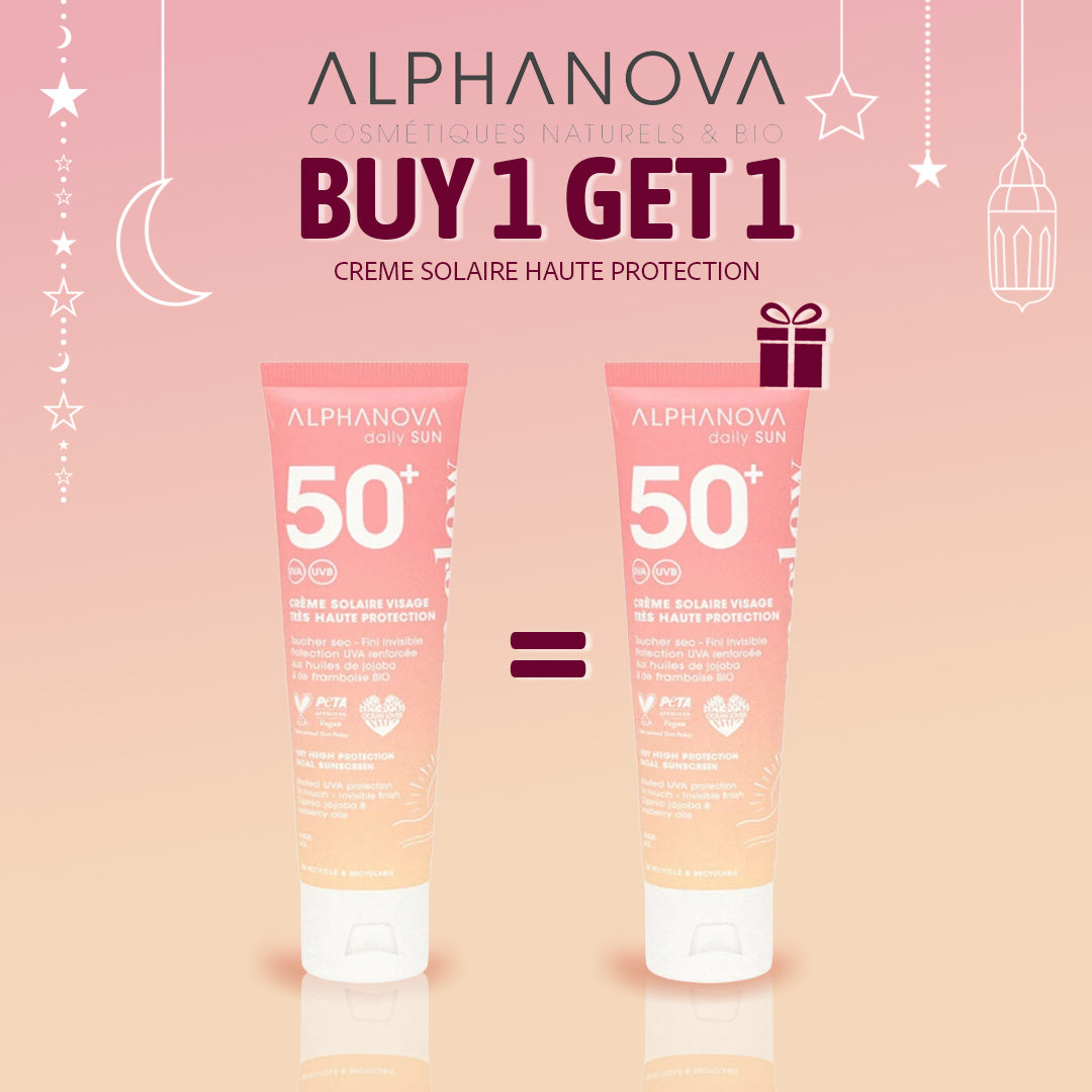 ALPHANOVA Daily SUN est une gamme de protection solaire naturelle à l’efficacité renforcée qui allie :