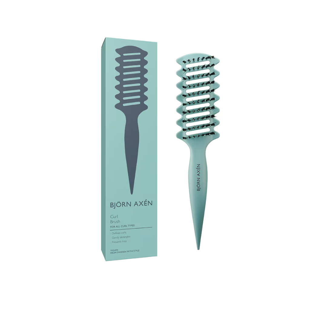 Ce qui distingue la Curl Brush de Björn Axén, ce sont ses détails ergonomiques pensés pour la physiologie du cheveu texturé :