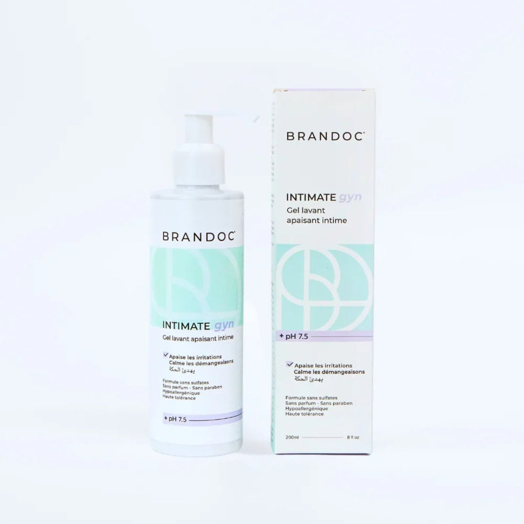 Le Brandoc Intimate Gyn est un gel lavant intime apaisant spécialement formulé pour les zones intimes sensibles ou sujettes aux inconforts. Il nettoie en douceur, aide à soulager les irritations et respecte l’équilibre naturel de la flore intime grâce à son pH adapté. Un soin d’hygiène intime recommandé et très recherché en parapharmacie maroc.