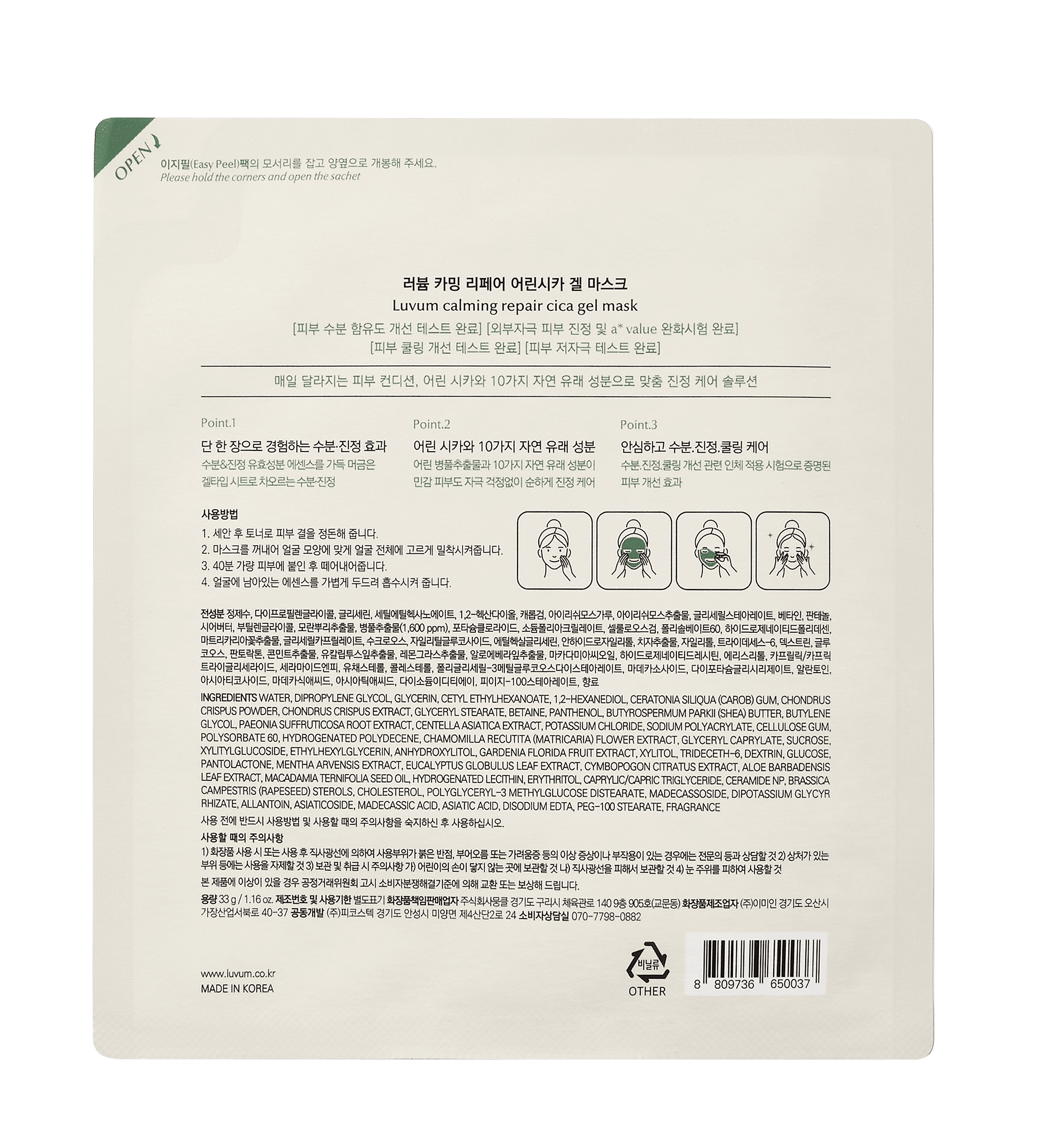 Luvum Calming Repair Cica Gel Mask 33g/5sheets – Masque Apaisant & Réparateur à la Centella Asiatica