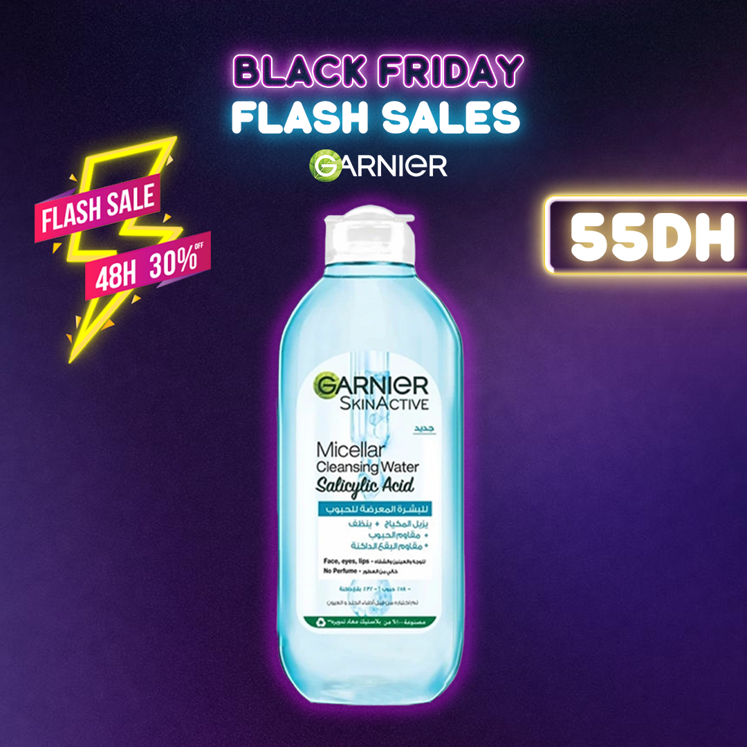 Garnier Skin Active solution eau micellaire à l’acide salicylique. Cette formule a été spécialement développée pour les peaux sujettes à l’acné. Des études cliniques ont prouvé son efficacité pour nettoyer, démaquiller et réduire visiblement les boutons. Infusée d’acide salicylique, cette eau nettoyante est sans parfum et offre une solution pour une peau plus claire et plus fraîche.