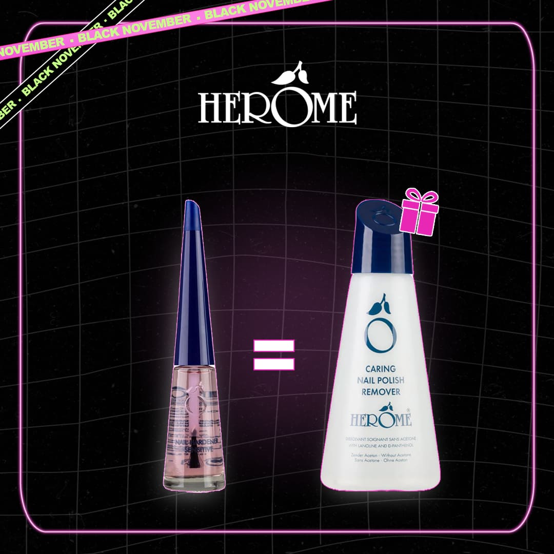 HERÔME PACK DURCISSEUR DOUX POUR ONGLES 10 ML = DISSOLVANT 120ML OFFERT