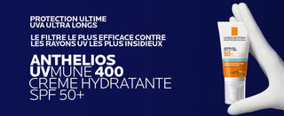 Anthelios UVMune 400 SPF 50+ écran solaire, offre une très haute protection du visage contre les UVA et UVB pour les peaux sensibles, notamment celles souffrant d’allergies solaires.