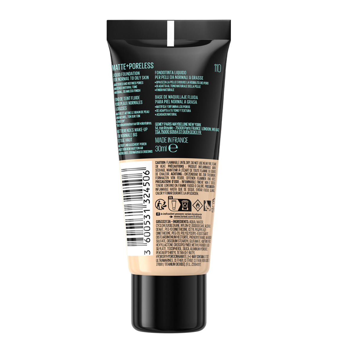 MAYBELLINE FIT ME FOND DE TEINT LIQUIDE MATTE + PORELESS 30ML 110 PORCELAINE