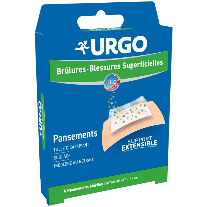 Urgo Brûlures – Pansement Extens 7×10 cm (Boîte de 4)