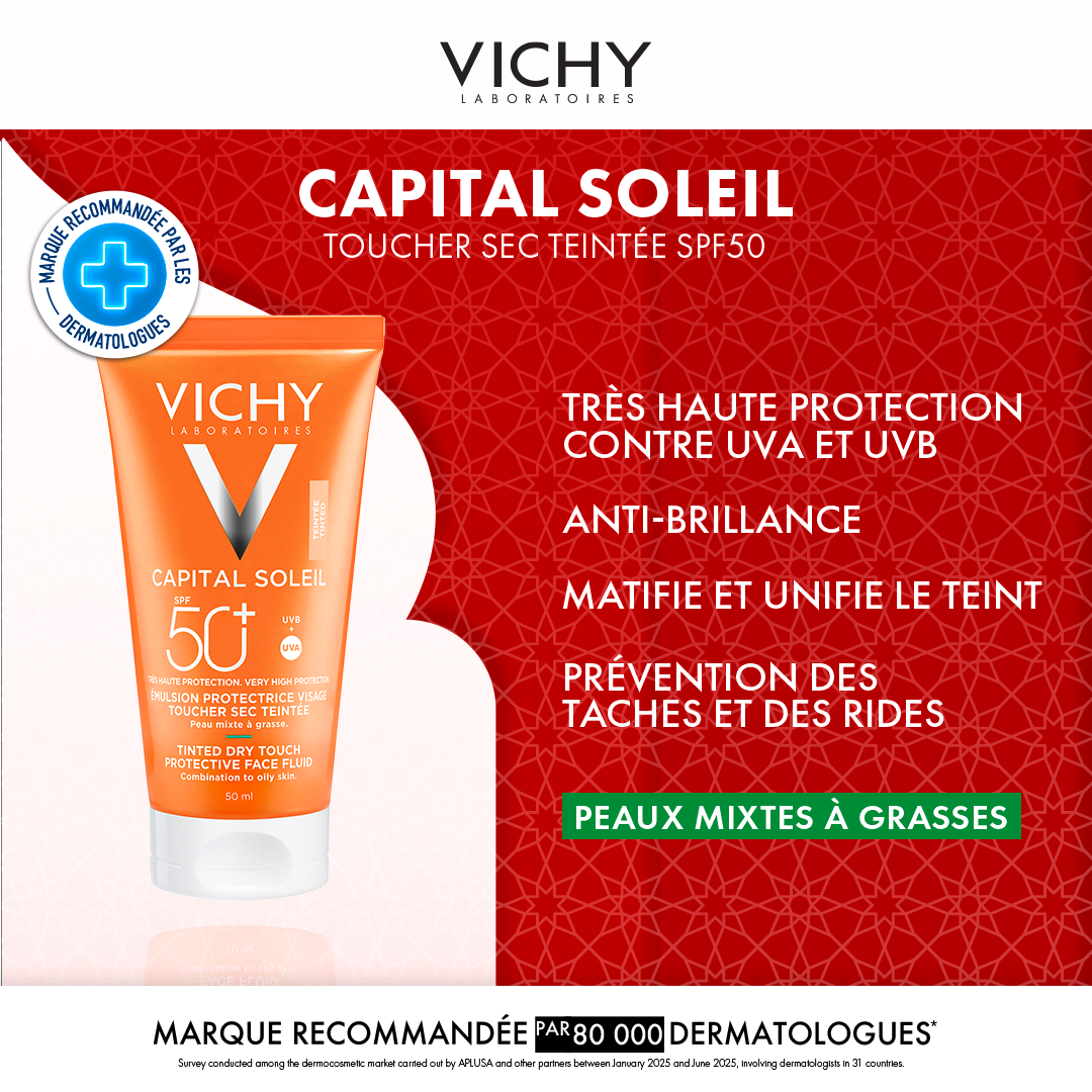 VICHY CAPITAL SOLEIL ÉMULSION TOUCHER SEC SPF50 PEAU SENS MIXTE À GRAS TEINTÉE = APRES-SOLEIL 100ML OFFERTE