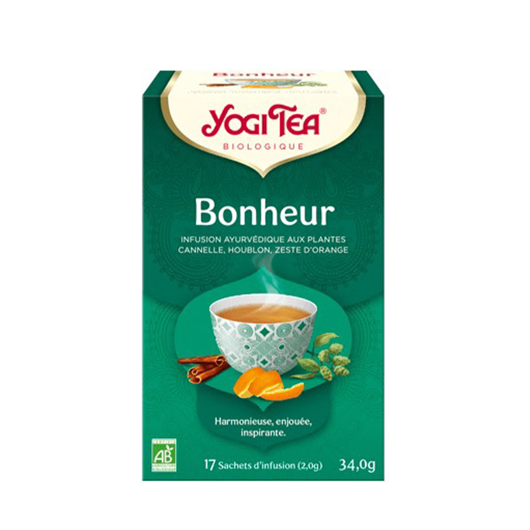YOGI TEA Bonheur 17 sachets de 2g est une préparation qui favorise un sommeil de qualité grâce à la présence de Houblon. Celui ci aide également les femmes à faire face aux signes révélateurs associés à la ménopause, comme les bouffées de chaleur, la transpiration, l'agitation et l'irritabilité.