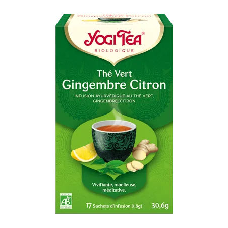 Yogi Tea THE VERT GINGEMBRE CITRON 17X2G (thé vert, gingembre, réglisse, citronnelle, huile essentielle de citron, zeste de citron, menthe poivrée, poivre noir, huile de gingembre)